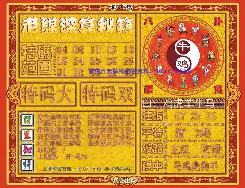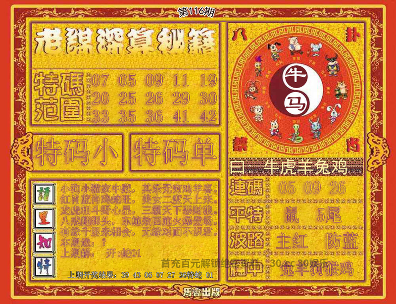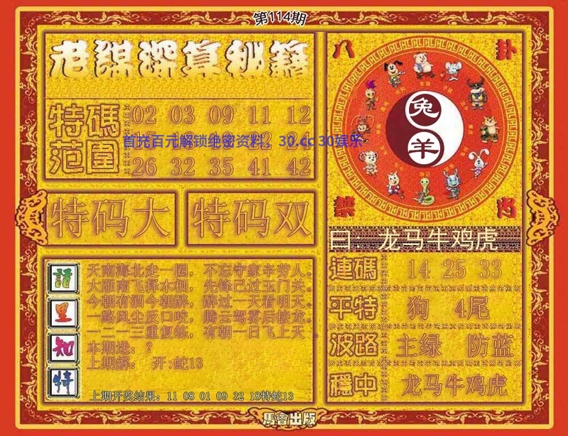 118期:密门仙机/心水特码信/黄大仙天书/波色生肖诗/生肖歇后语